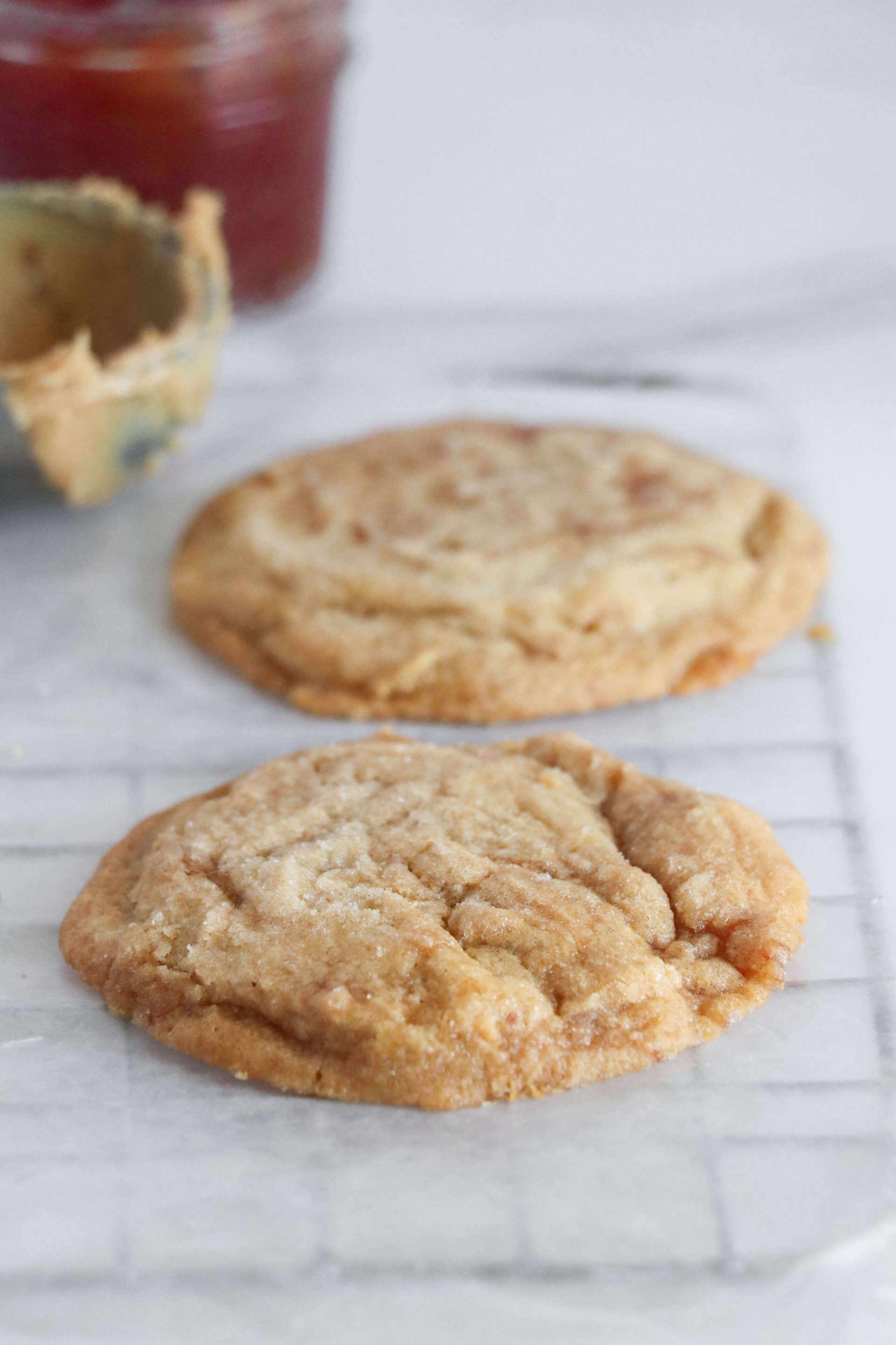 Io sono una fanatica di pane, burro di arachidi e marmellata. È una della mie colazioni preferite, una coccola mattutina che mi piace così tanto. Quindi ho pensato, perchè non farci dei cookies?? Ed eccomi qui, con questa ricetta pazzesca per voi: Cookies burro di arachidi e marmellata.