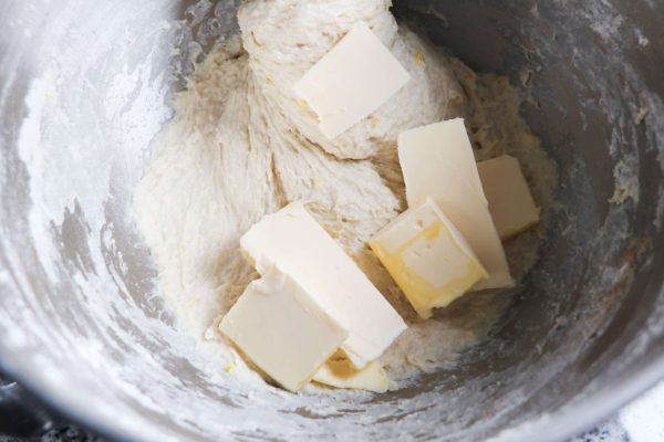 Inizia a lavorare l’impasto con il gancio a spirale, fino ad amalgamare tutti gli ingredienti, solo poi aggiungi il burro vegetale.