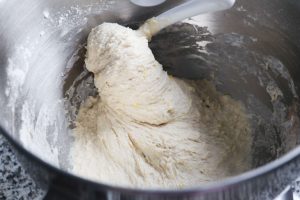 Lavora l’impasto per 10 minuti a medio-alta velocità, dovrai ottenere un impasto bello sodo, lucido ed elastico.