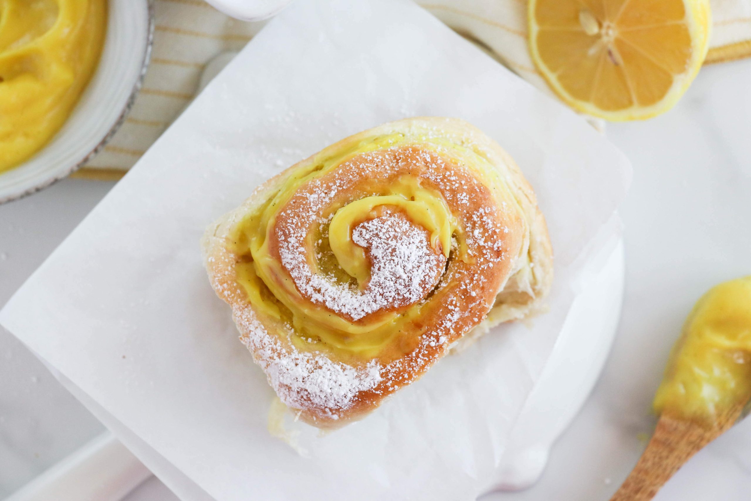 - vortice cremoso, con tanta crema al limone vegana e poi una leggera spolverata di zucchero a velo