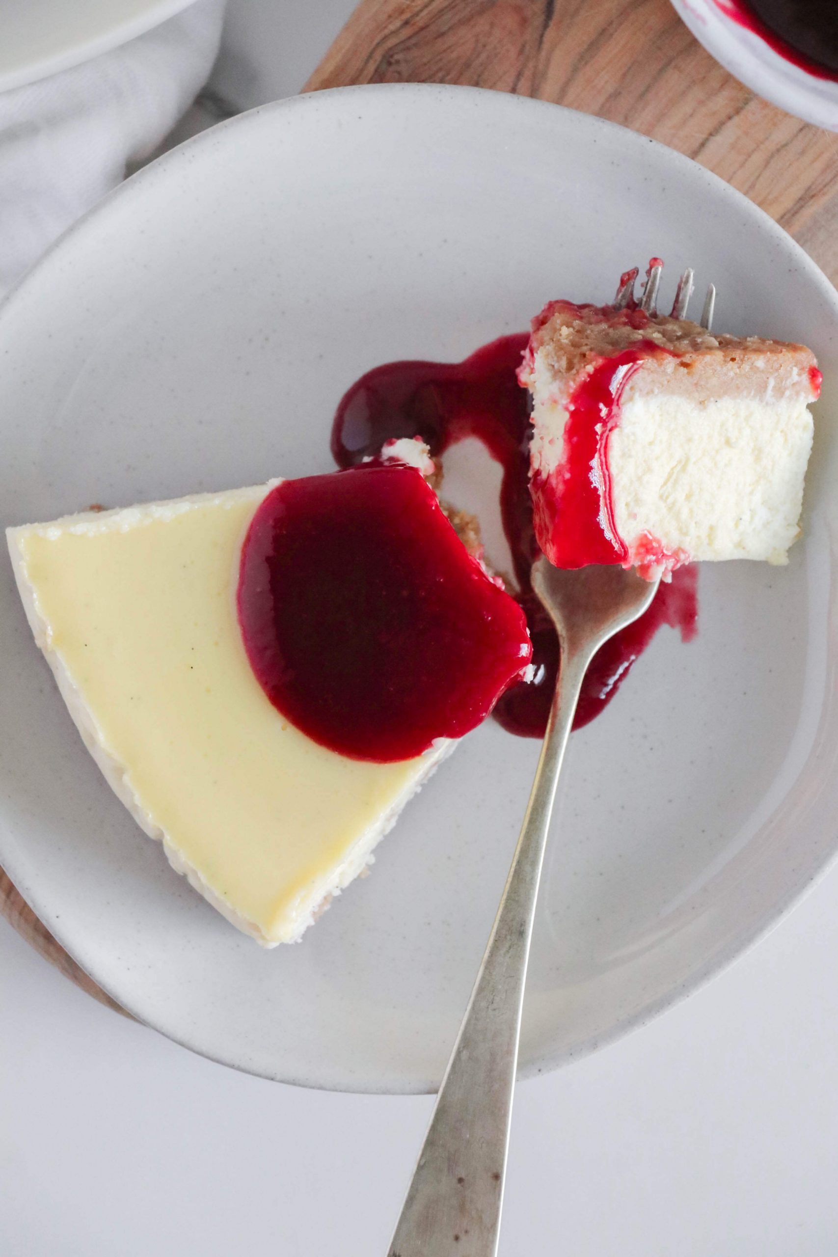 Trattasi di una Cheesecake cotta a lungo, a basse temperature e poi, una volta raffreddata completamente, è da conservare in frigo e servire come più vi piace: con confettura alla frutta, crema spalmabile al pistacchio o al cioccolato, oppure con caramello o cioccolato fuso. I modi per servirla sono tantissimi, per questo motivo io la lascio sempre “bianca” e neutrale, così posso scegliere al momento come accompagnare ogni singola fetta.