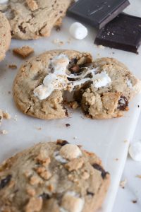 Da qui, tantissime creazioni dolci create a tema S’mores: cupcakes, torte e cookies. Proprio per questo voglio proporvi questo sapore dentro a dei biscotti: ecco per voi gli S’mores Cookies!