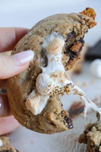 Loro sono un qualcosa di golosissimo. Gli S’mores Cookies rappresentano una delle combo più amate dagli americani: marshmallow, cioccolato fondente e Graham Crackers, che sono dei crackers dolci, tipo i nostri biscotti secchi.