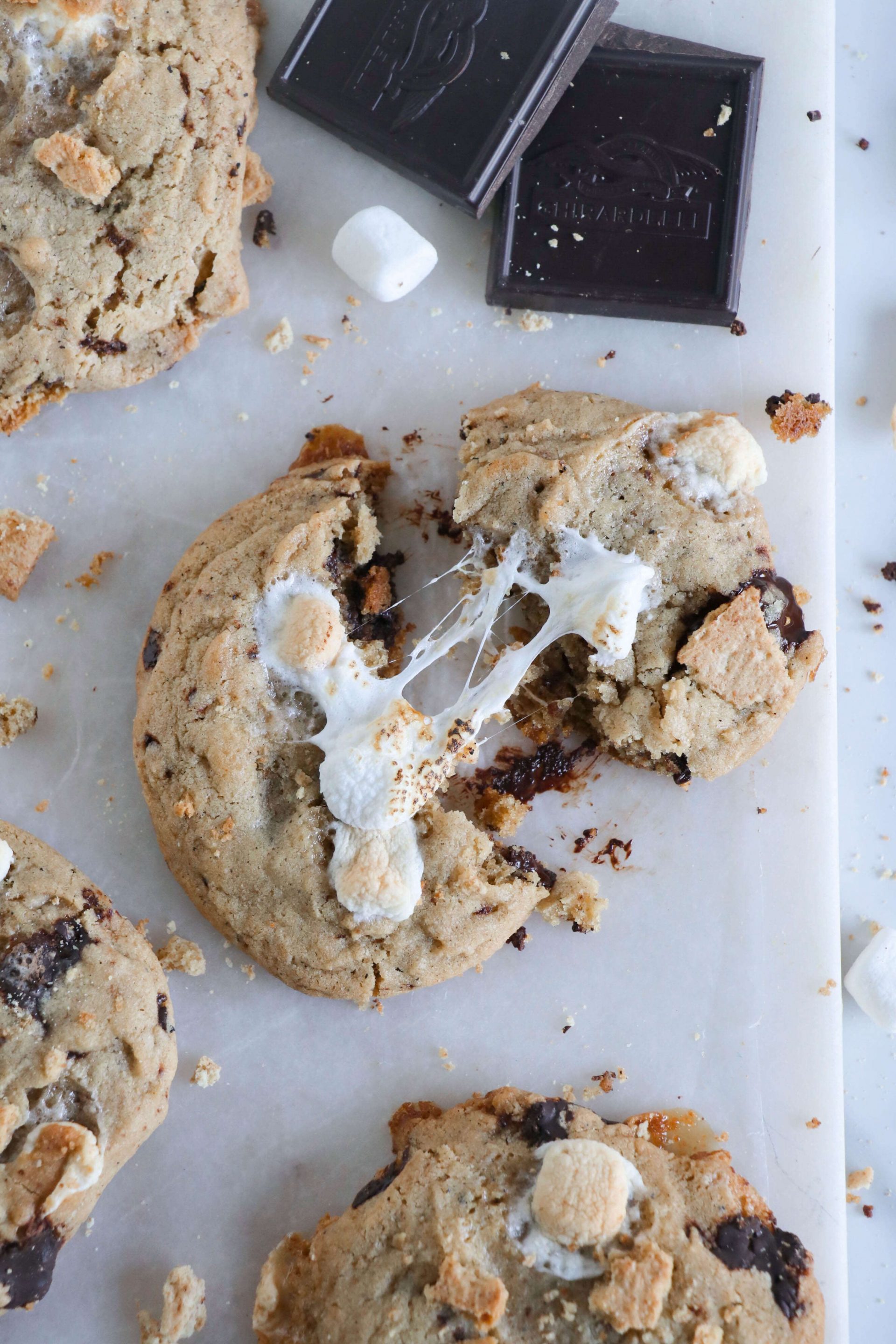 Loro sono un qualcosa di golosissimo. Gli S’mores Cookies rappresentano una delle combo più amate dagli americani: marshmallow, cioccolato fondente e Graham Crackers, che sono dei crackers dolci, tipo i nostri biscotti secchi.