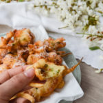 Mettete la pastella in frigo e mentre riposa, prendete un pentolino fondo di medie dimensioni, circa 18cm di diametro, riempiendolo per metà con l'olio; l'olio sarà pronto quando avrà raggiunto una temperatra di 190/200° (se non avete un termomentro, fate la prova con il manico di un mestolo: intingetelo nell'olio, fino a toccarne il fondo e se farà le bollicine intorno ad esso, l'olio è arrivato a giusta temperatura per la frittura)
