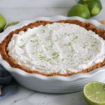In una ciotola unisci il latte condensato, lo yogurt, la scorza di lime con il suo succo e i tuorli d'uovo. Mescola a mano con una frusta fino a renderlo omogeneo. Trasferisci la crema sopra la base biscotto appena cotta e riponi il tutto in forno a cucinare per 25 minuti a forno statico a 180C