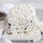 Ora aggiungete tutto il cioccolato tritato e 50g di meringhe sbriciolate (sul totale pesato) e con una spatola, mescolate delicatamente il tutto, con movimenti dall’alto verso il basso